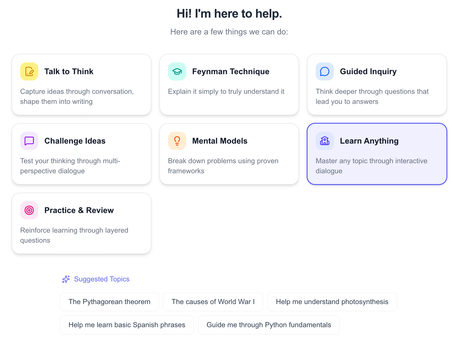 This phase takes place within the Socra interface under the "Learning Anything" Dialogue Mode.